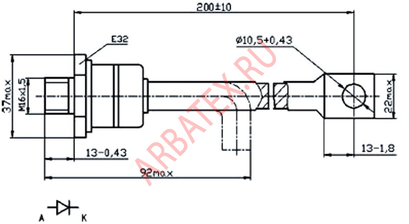 Масса диода не более 290 г.