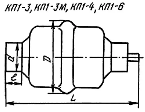 Описание конденсатора КП1-4 25кВ 5/100 пф