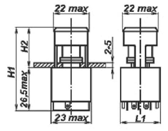 П2П1Т-4БВ переключатель кнопочный в том числе со световой индикацией и фиксацией, применяется для коммутации электрических цепей постоянного и переменного тока в радиоэлектронной аппаратуре. Климатическое исполнение В. Световой элемент, используемый в переключателях – миниатюрная лампа накаливания типа СМ28-0,05-1 ИТЛЮ.675100.001 ТУ, напряжение питания 28 В.
