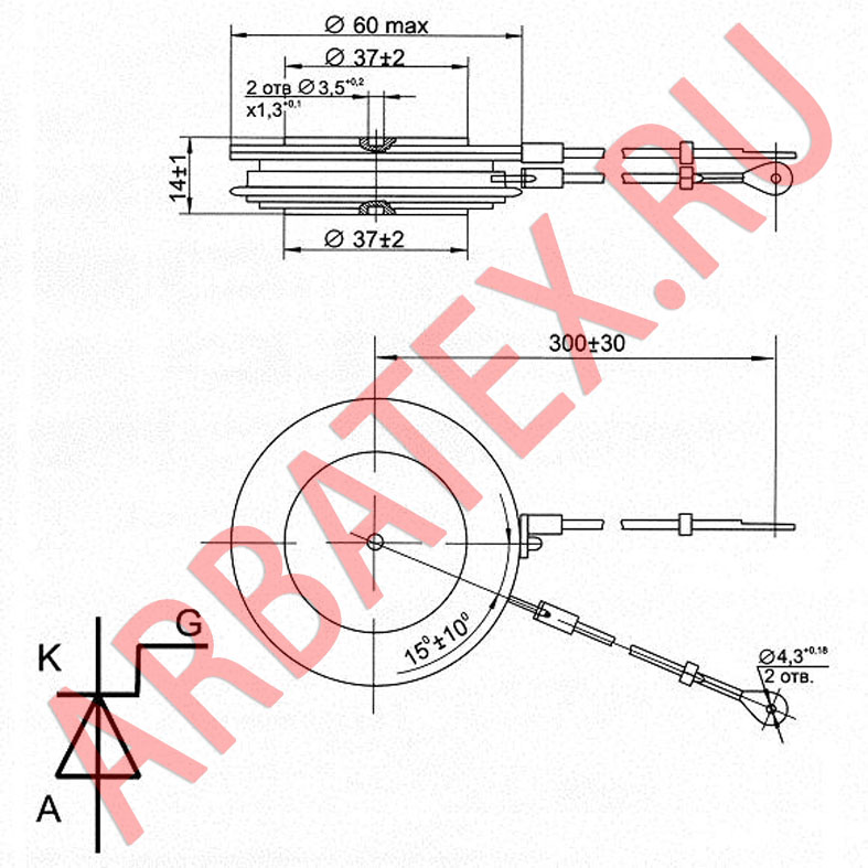 Масса тиристора не более 70 г.