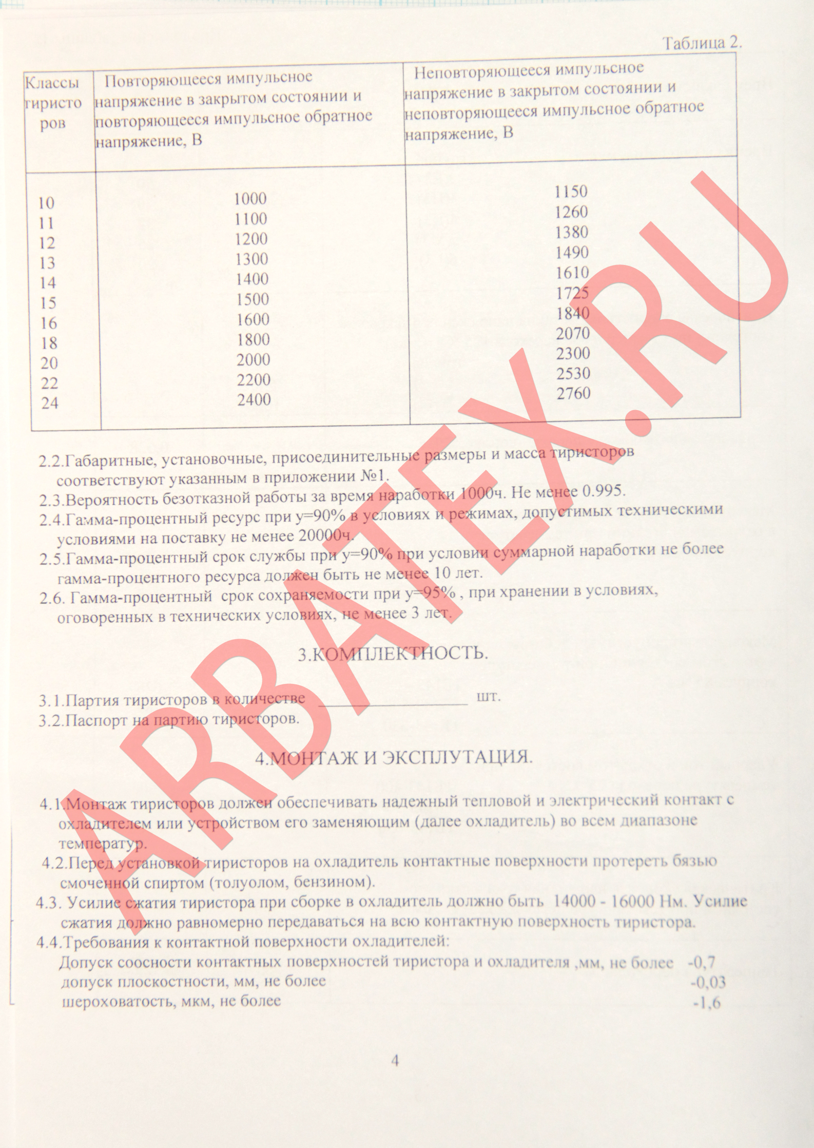 Масса тиристора не более 6 г.
